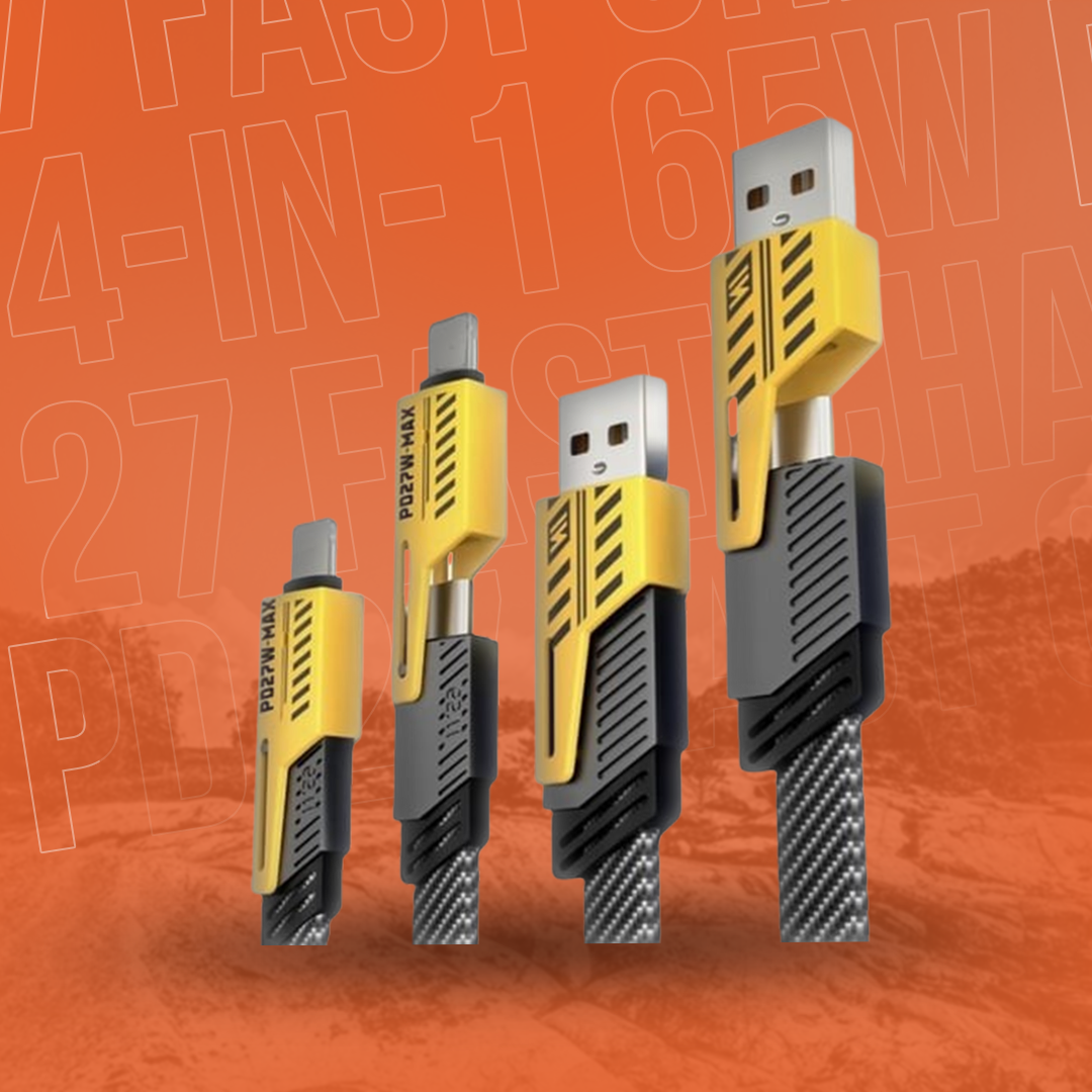 The 4-in-1 65W PD 27 Fast Charging Cable is the perfect combination of power, speed, and convenience. Its universal design eliminates the need for carrying multiple chargers, while the 65W PD output ensures rapid and safe charging for all your devices. The premium braided exterior offers added strength, making it resistant to daily wear and tear. Whether you’re at your desk or on the move, this cable delivers reliable performance every time — keeping all your devices charged and synced with ease.